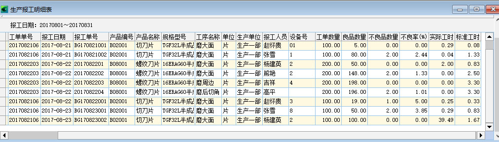 由正航軟件單獨為多工序行業開發的報工系統,操作方法是:由生產主管先打印出生產制令單(把單號及工序名稱等變成條碼),給到現場生產人員,生產人員在開工前,將需開工的工單交給車間錄單人員登記開工。錄單人員掃描槍直接點開工,掃描工單號,再掃設備號,再掃人員編號,點開始,系統就成了開工狀態,并保存在一個數據表中,然后生產完成時,再掃描工單號,系統自動帶出剛才那些開工信息,只需要手工輸入數量(如果有不良品就再輸入不良品數量,選擇不良品原因),點確認,系統就記錄了實際的加工工時及相關信息,然后生成系統的報工單;現場可通過電子看板即時了解生產一線的情況。